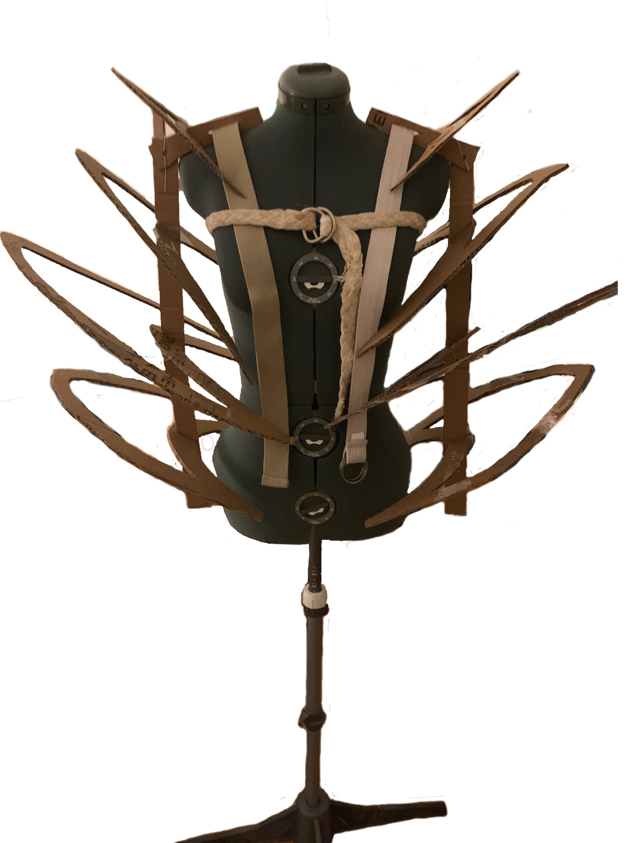While designing, I focused on the significance of each part of the body. I used bone-like structures to highlight areas associated with power and femininity. A structure at the hip or pelvis carried a different meaning than one at the breast or ribcage.
